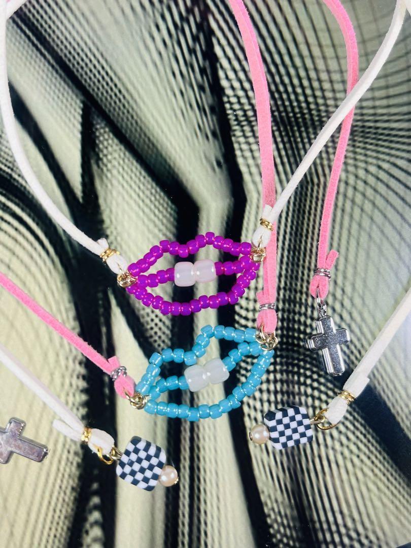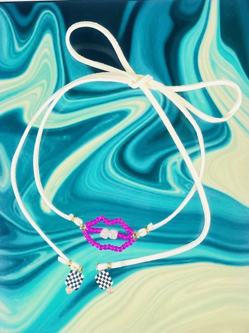 首の後ろでリボン結びするだけで簡単に装着出来ます◎