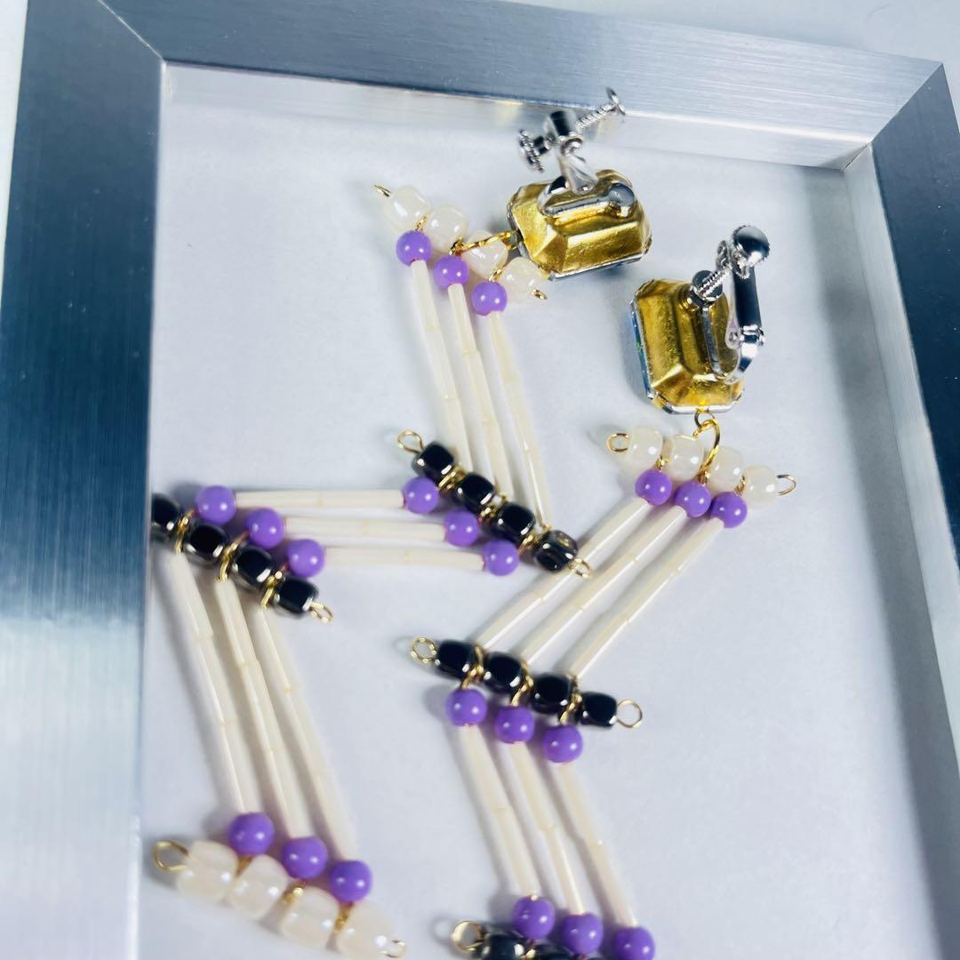 ギザギザした形が大好きなのでオフホワイトカラーの竹ビーズとパールビーズ等を組み合わせて作成しました◎